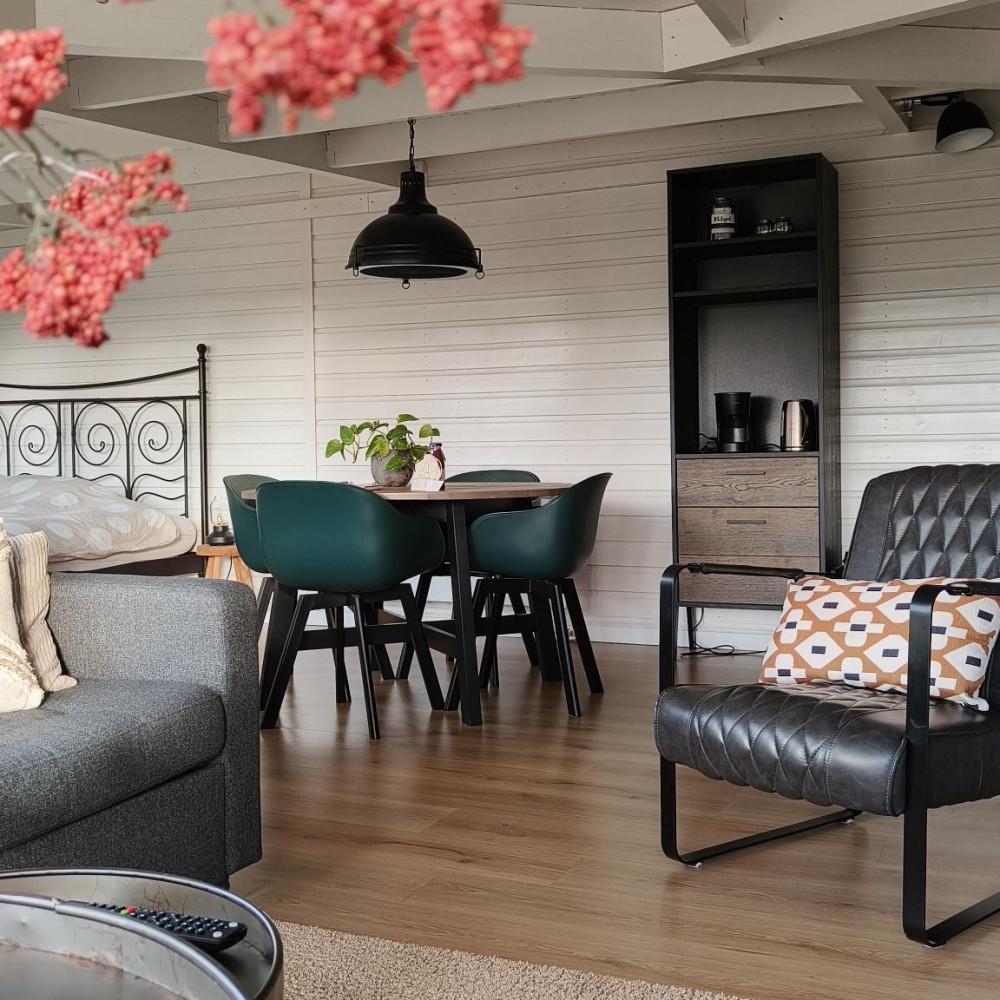 De tuinkamer is een volledig appartement met eigen douche en toilet voor maximaal 4 personen. De kamer heeft een kitchenette met een 2-pits kookplaatje, een koffiezetautomaat en een waterkoker. In het zitgedeelte staat een Smart-TV. Er is gratis Wifi beschikbaar. Slapen kan op het tweepersoonsbed (180x200) en op de tweepersoons slaapbank (160x200). De kamer wordt verwarmd door middel van elektrische verwarming. Het ontbijt is optioneel en wordt op de kamer gebracht.